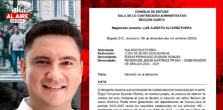 Consejo de Estado admitió demanda contra gobernador electo Renson Martínez por...