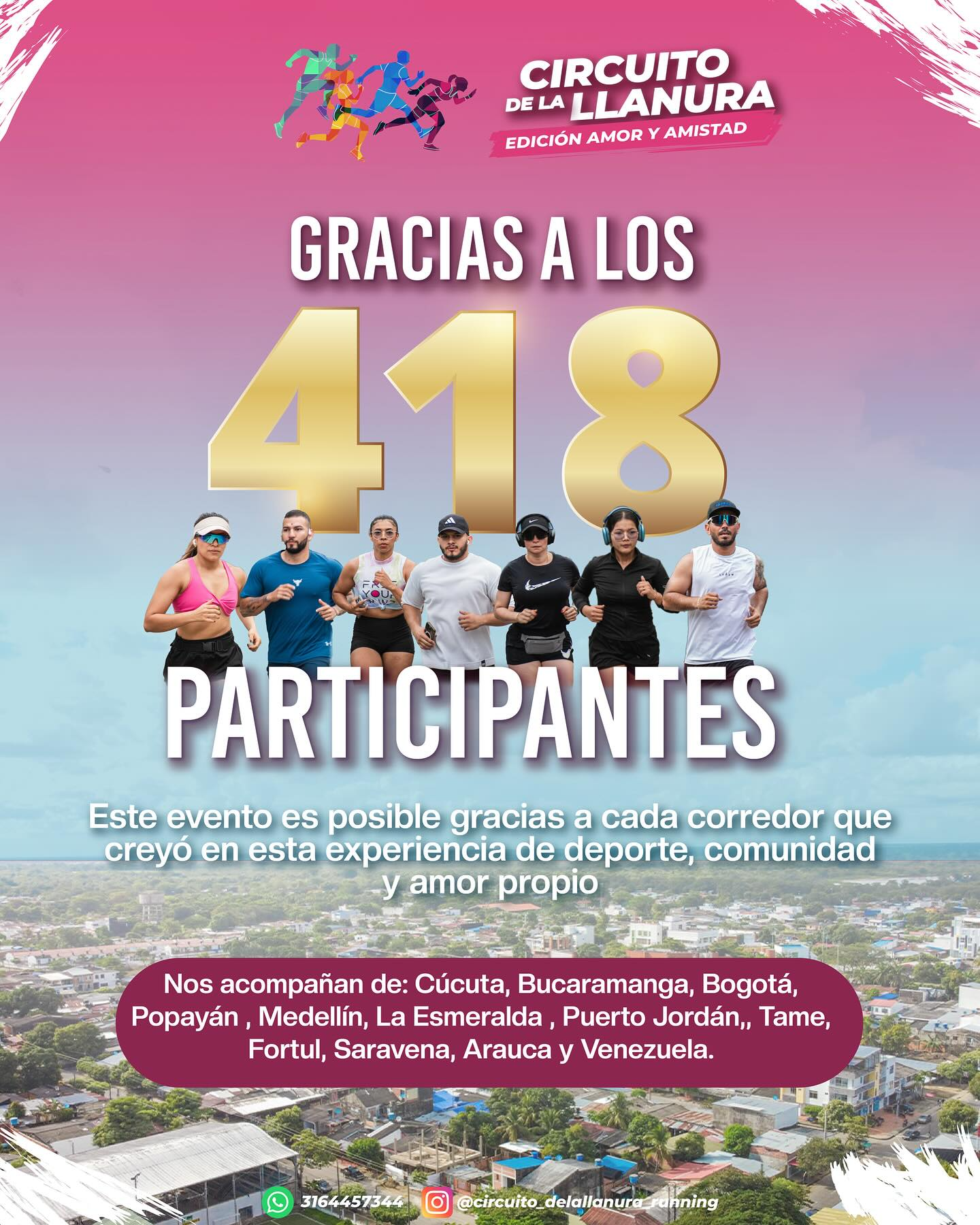 Este domingo 28 de septiembre se realizará en Arauca, Arauca, el Circuito de la Llanura: Edición Amor y Amistad, una carrera recreativa que reunirá a más de 400 corredores en dos categorías: 5K y 10K. El evento, que promueve el deporte, la salud mental y la integración social, contará con participantes de diferentes regiones del país y de Venezuela.
